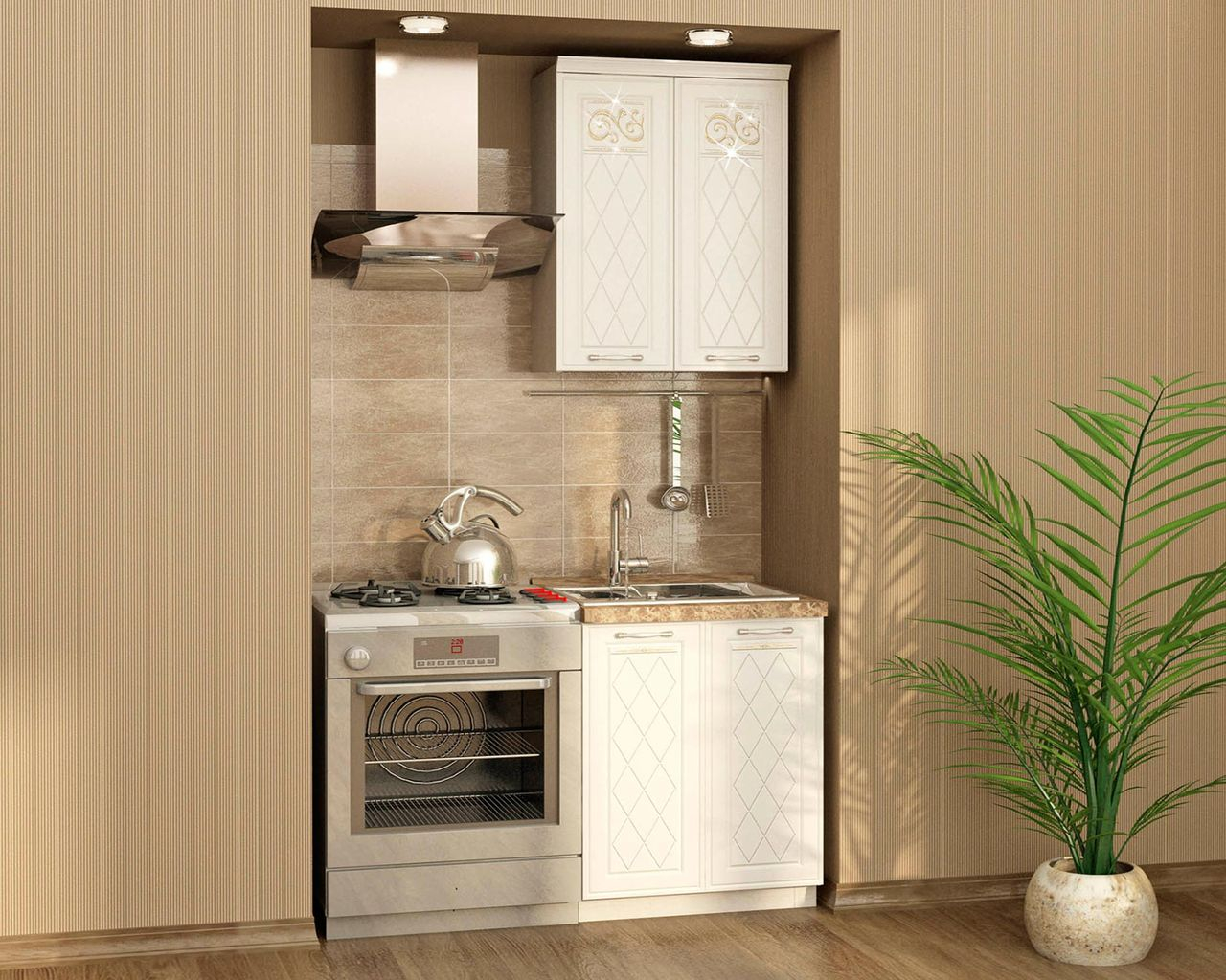 Отличительные черты набора мебели для кухни «Тиффани» - простота, четкость и лаконичность линий. Этот набор мебели понравится ценителям современных тенденций в мебельном дизайне. С такой мебелью интерьер кухни становится уютным, домашним и современным. Набор мебели для кухни «Тиффани» – решение для вашего интерьера в светлых тонах. Фасады украшены ажурной фрезеровкой, глиттерным рисунком и кристаллами Swarovski®. Для верхних шкафов этих моделей предусмотрена установка подъемного механизма с системой плавного закрывания. Производители: Blum (Австрия) или Hafele (Германия). Механизм позволяет легко поднимать и удерживать дверцу в нужном положении, а также плавно и бесшумно закрывать ее.