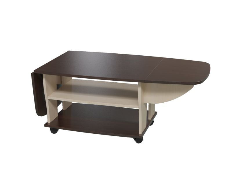 Журнальный столик 6-0212 изготовлен из ДСП. Стол в разложенном виде имеет размер 1380х660 мм. Столик возможен в цвете венге/клен. Производитель: Россия.