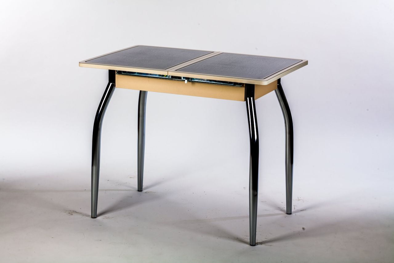 Механизм раскладки синхронный - при раздвижении стола, потянув одну часть столешницы, вторая часть двигается автоматически одновременно. В механизме на синхронное раздвижение влияет присутствие тросиков. Вставка состоит из двух частей, закрепленных между собой петлями (как книжка) и закреплена к столу осью.