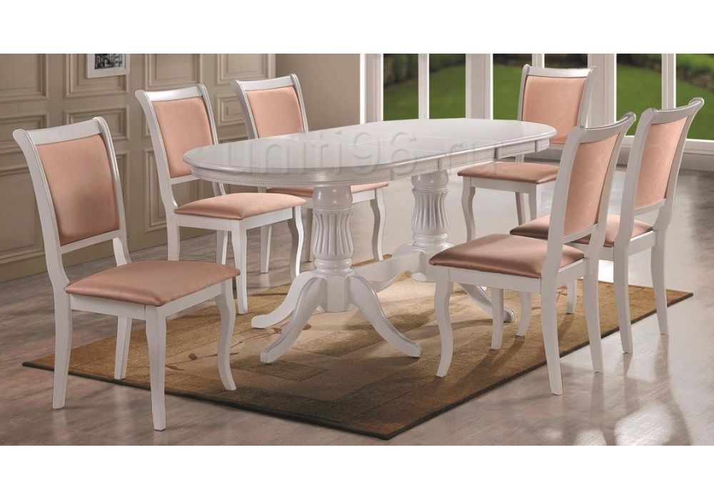 Стол DIAMANTE круглый бук, мдф, шпон дуба, 100 х 100+30 х 75 см, Ivory white